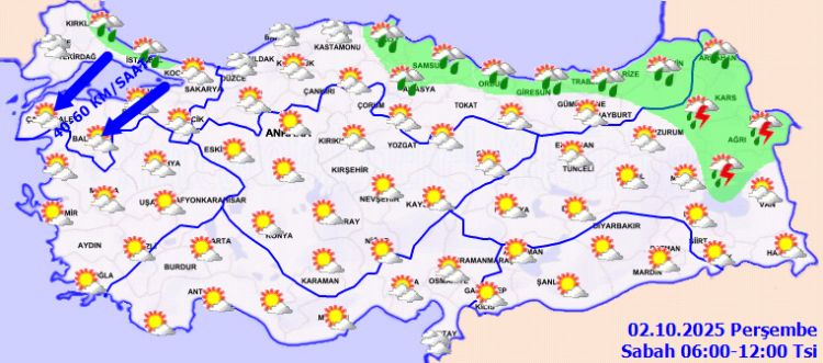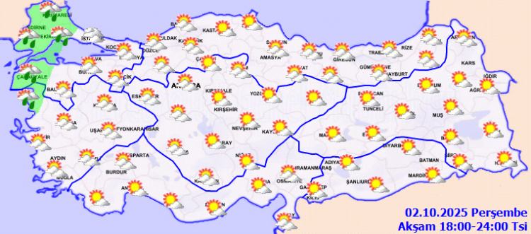 ANKARA (İGFA) – Meteoroloji Genel Müdürlüğü 2 Ekim Perşembe gününe ilişkin hava tahmin raporunu yayımladı.