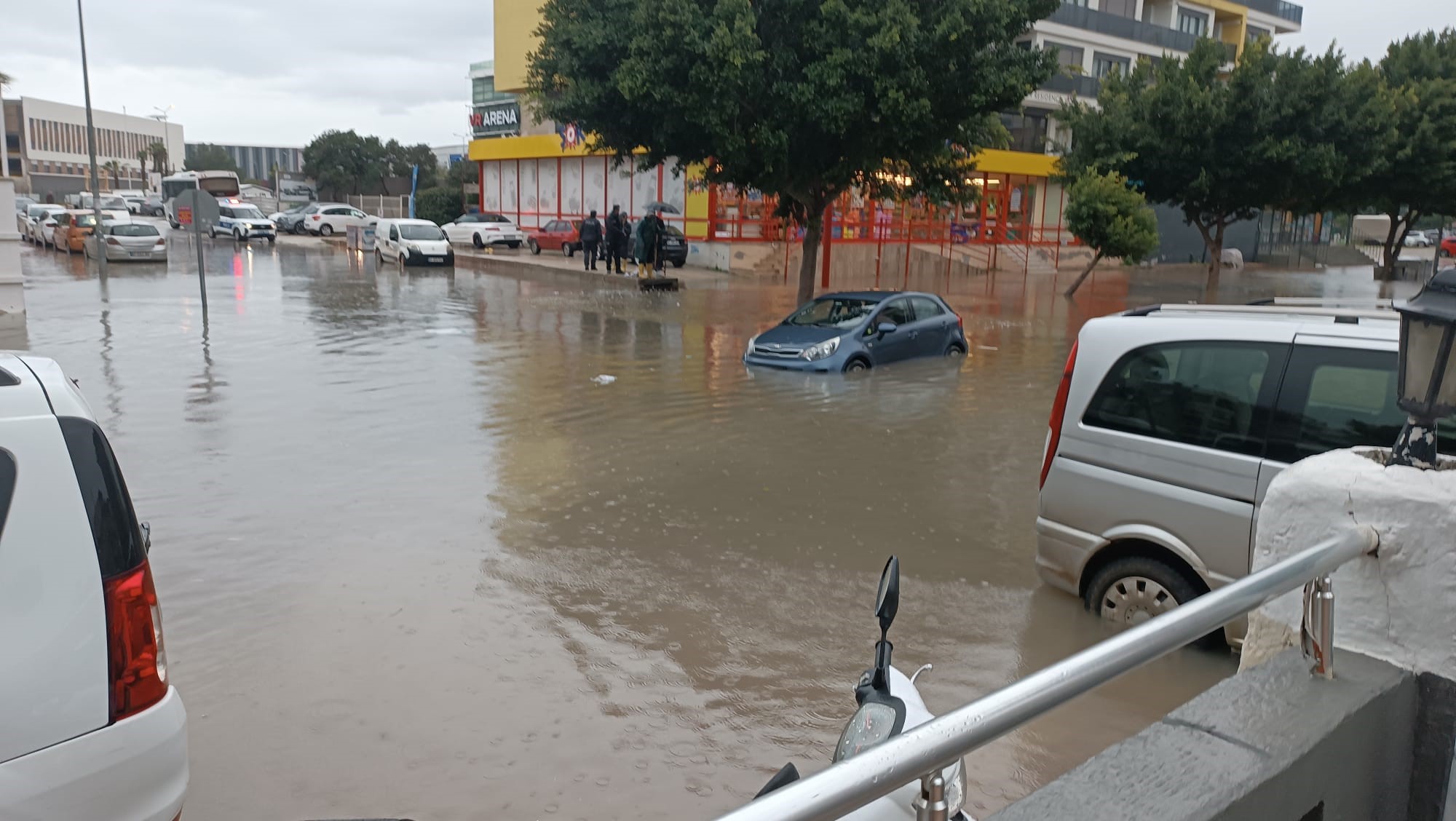Diğer yandan Konyaaltı ilçesinde okula giden lise öğrencilerinin suyun içerisinden geçmeye çalıştığı anlar, cep telefonu kamerasına yansıdı.