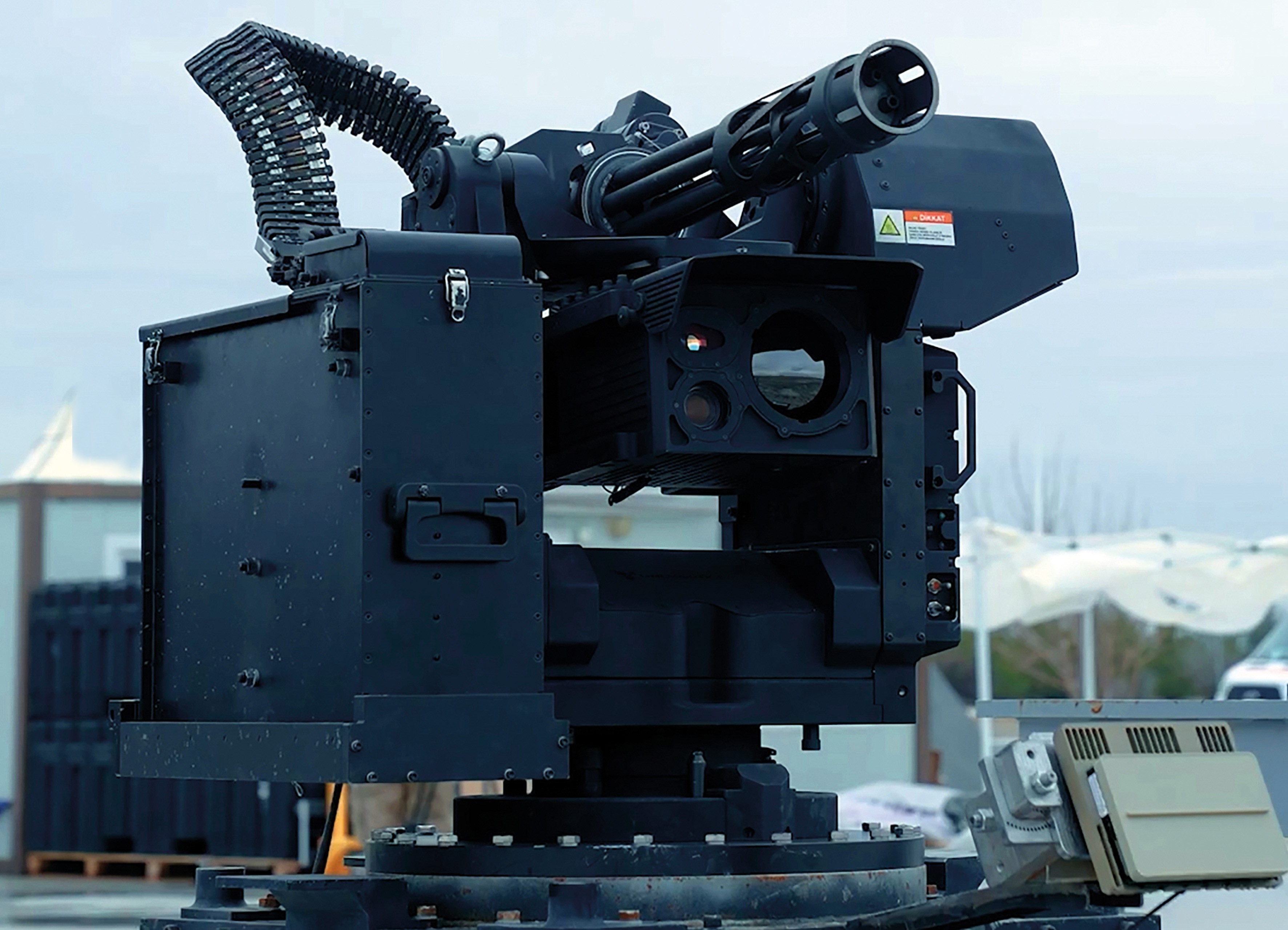 Sistem, tehditleri henüz yaklaşmadan bertaraf etmek üzere üç katmanlı kinetik (hard-kill) koruma kalkanı sunuyor. Dış katmanda, TRAKON 30 UKSS ayarlanabilir atım hızı sayesinde dakikada 1350 atıma ulaşabilen 30×113 mm top; tehdidin büyüklüğü ve hızına bağlı olarak 2 kilometreye kadar menzilde, yüksek tahrip gücüne sahip (HEI–HEDP) ve/veya yaklaşma tapalı (proximity) mühimmat atarak görev yapıyor. Bu katmanda başta Shahed-136 tipi dolanan mühimmatlar olmak üzere, her tür dolanan mühimmat ve NATO İHA sınıflandırmasında yer alan sınıf 1 ve sınıf 2 platformlar etkin şekilde hedef alınıyor. Orta katmanda, TRAKON 12.7 sistemleri ile dakikada 1200 atım hızına ulaşabilen M3 ağır makineli tüfek; kamikaze drone tehditlerine karşı yüksek yoğunluklu ateş gücüyle aşılması güç bir savunma hattı oluşturuyor. Yakın savunma katmanında (son katman) ise TRAKON LITE 134 ile dakikada 3 bin atım yapabilen 7.62 mm M134 Minigun; daha küçük ve çok yakın mesafedeki tehditleri saniyeler içerisinde etkisiz hale getiriyor. Sistemin tüm ana bileşenlerinin (UKSS, silah ve entegrasyon) SYS Grup çatısı altındaki UNIROBOTICS, CANiK ve AEI Systems tarafından üretilmesi, projede sorunsuz sistem entegrasyonu, hızlı teslimat ve ölçeklenebilir üretim avantajlarını beraberinde getiriyor. Bu entegre güç, kritik altyapıların ve askeri üslerin korunmasında stratejik bir fark oluşturuyor.