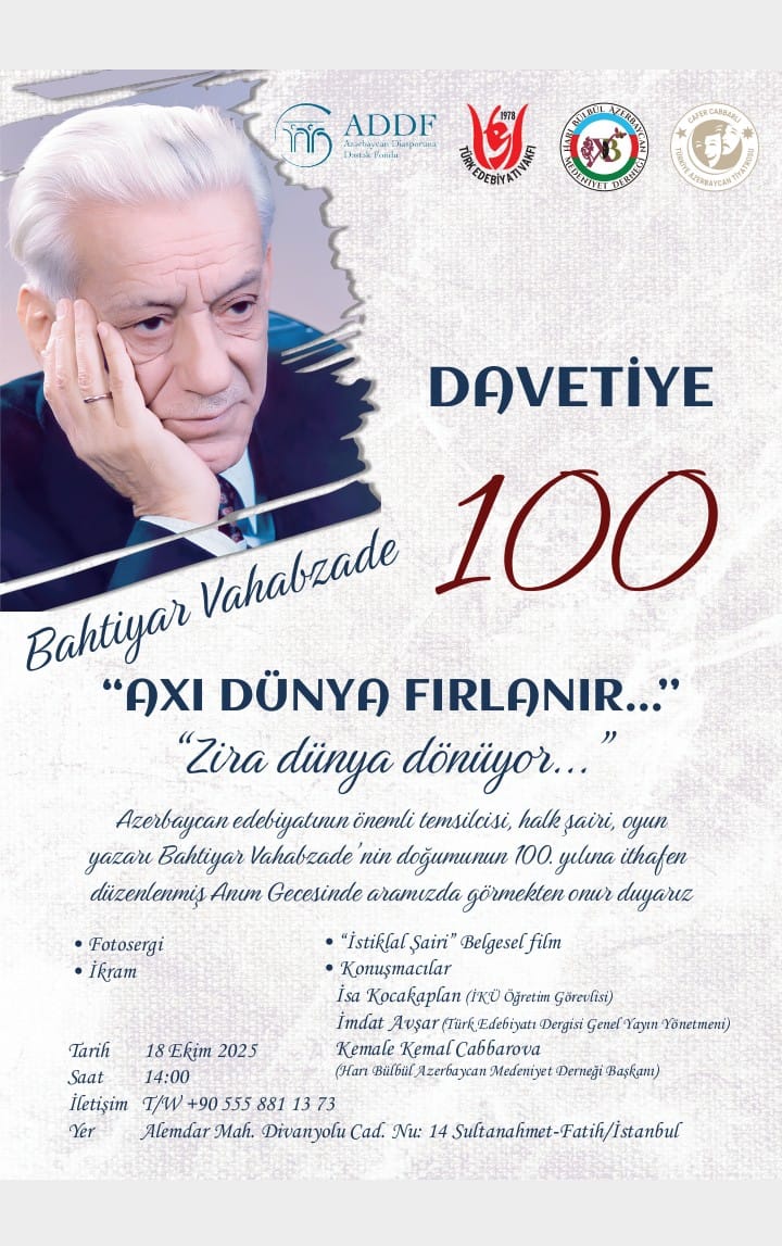 Azerbaycan edebiyatının usta kalemi, halk şairi ve oyun yazarı Bahtiyar Vahabzade’nin doğumunun 100. yılı, İstanbul’da düzenlenecek özel bir etkinlikle anılacak.
