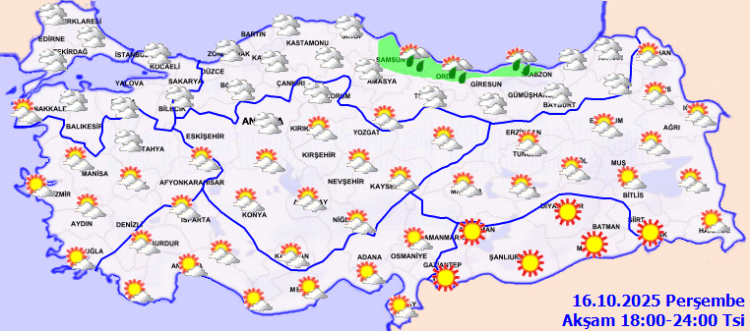 ANKARA (İGFA) – Meteoroloji Genel Müdürlüğü, 16 Ekim Perşembe gününe ilişkin hava tahmin raporunu yayımladı.