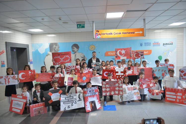 Bursa Büyükşehir Belediyesi tarafından ‘Çocuk Dostu Metro İstasyonu’na dönüştürülen Dörtçelik Çocuk Hastanesi Metro İstasyonu, 29 Ekim Cumhuriyet Bayramı öncesinde ilkokul öğrencilerinin hazırladığı afişlerle süslendi.