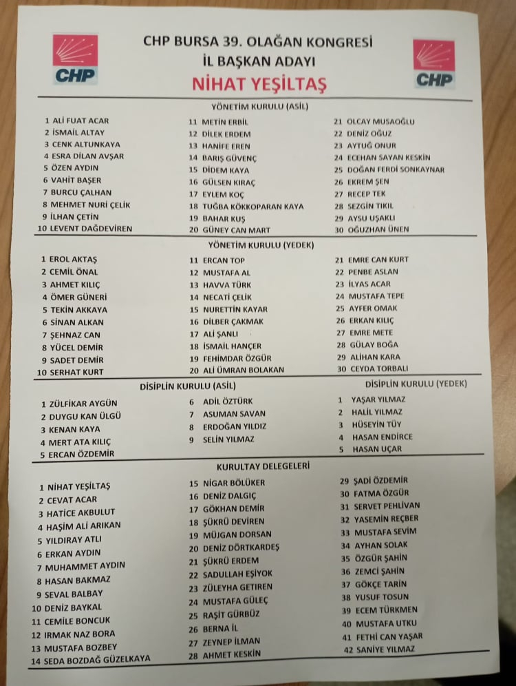 Cumhuriyet Halk Partisi 39. Olağan Bursa İl Kongresi demokrasi şöleni havasında gerçekleşti. Kongrede tek aday olan Nihat Yeşiltaş güven tazeleyerek yeniden İl Başkanı seçildi.