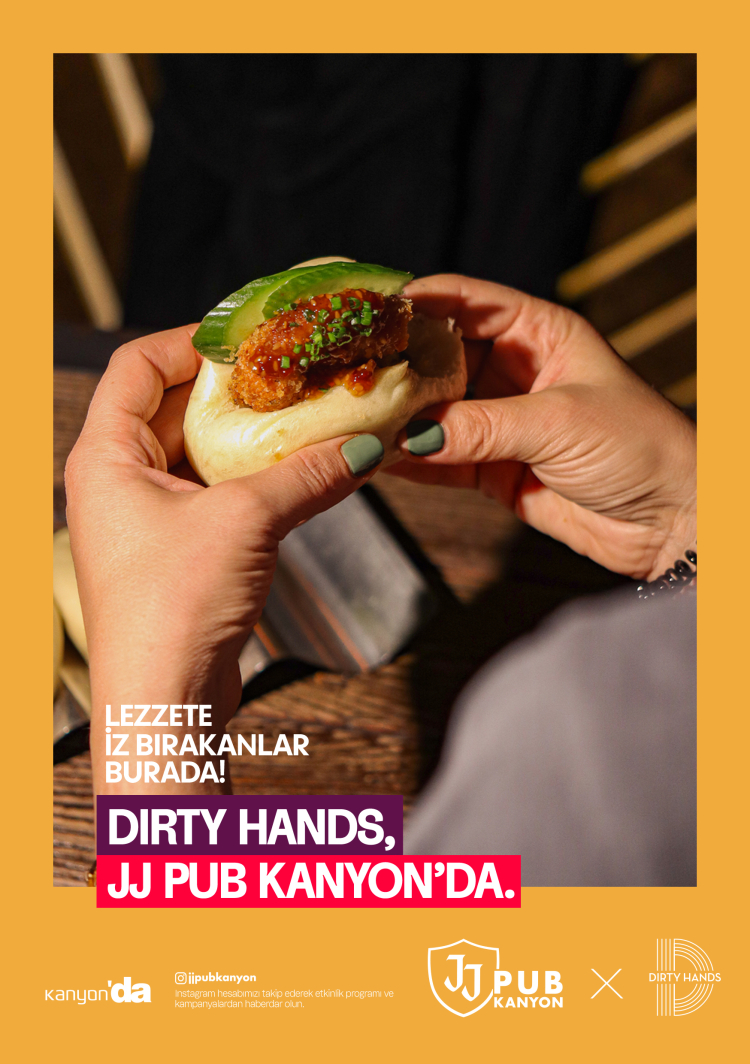 İstanbul’un önde gelen sokak lezzetleri markalarından Dirty Hands, Kanyon’un kalbinde yer alan JJ Pub Kanyon’da misafirleriyle buluştu. Bu yeni iş birliği sayesinde ziyaretçiler, hem öğle hem de akşam saatlerinde Dirty Hands’in imza lezzetlerini deneyimleme fırsatı buluyor.