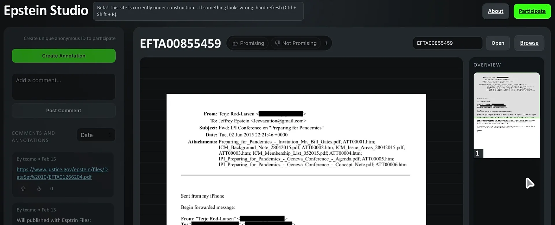 An itibariyle sadece masaüstünden epstein-studio.com adresiyle erişilebilen site, belgelerdeki sansürlü kısımları kolektif zeka ile çözmeyi amaçlıyor.
