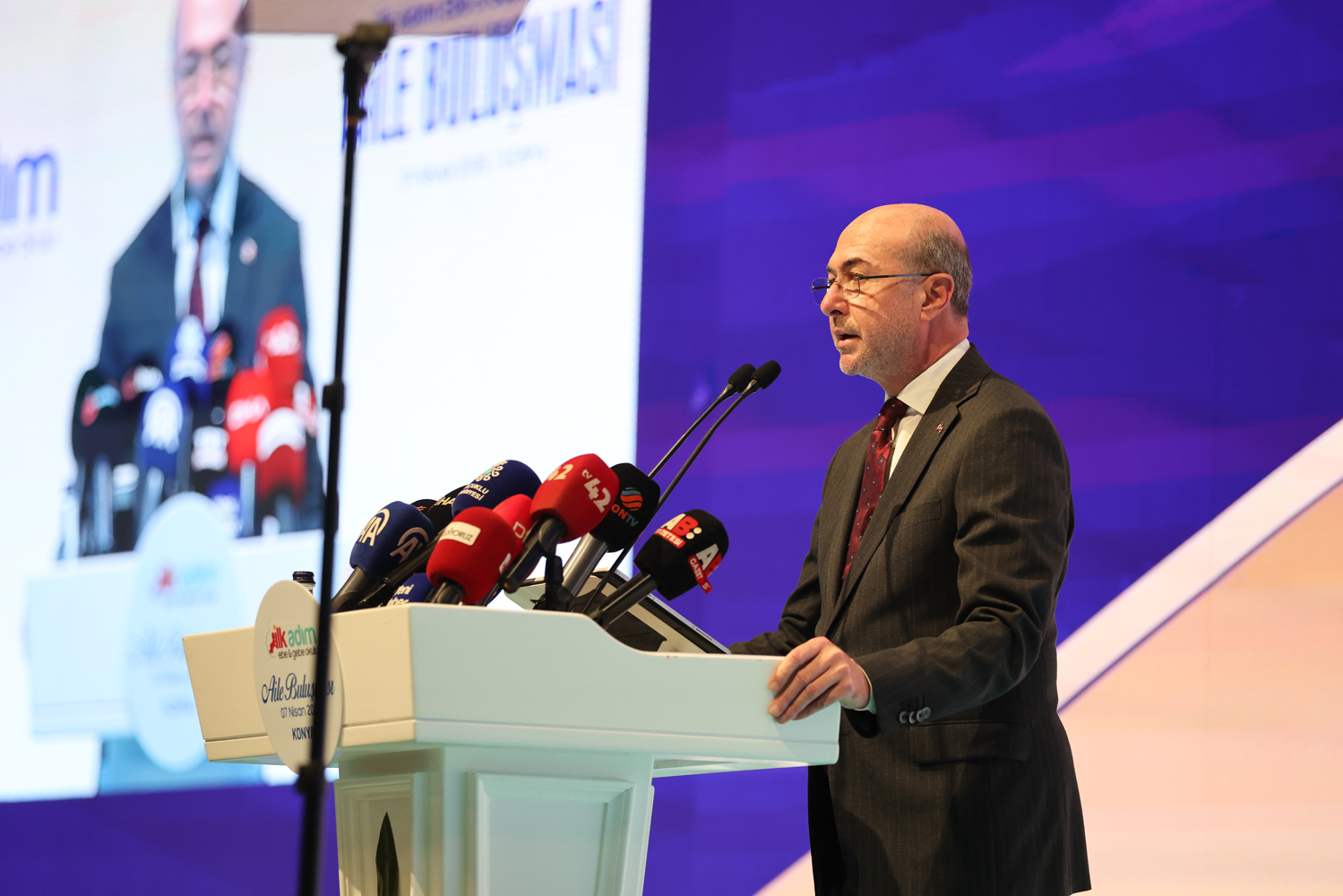İlk Adım Ebe Gebe Okulu Aile Buluşması vesilesiyle bir arada bulunmaktan duyduğu memnuniyeti ifade eden Konya Valisi İbrahim Akın; “Öncelikle programımızı teşrifleriyle bizleri onurlandıran Sayın Bakanımıza ve Grup Başkan Vekilimize şükranlarımı arz ediyorum. Sayın Cumhurbaşkanımızın himayelerinde ilan edilen Aile Yılı milletimizin varlığını istikbalini ve medeniyet tasavvurunu ayakta tutan en temel kuruma yani aileye yöneltilmiş son derece güçlü ve kıymetli bir irade beyanıdır. Zira aile insanın ilk eğitimini aldığı, karakterinin şekillendiği sevgiyle güvenle ve sorumluluk duygusuyla büyüdüğü en asli yapıdır. Bir milletin yarını aileye verdiği değer kadar güçlüdür. İlk adım Ebe Gebe Okulu da tam olarak bu anlayışın somut ve kıymetli bir tezahürüdür. Nitekim bu projenin ilk adımı 2019 yılında atılmıştır. Bugünse aynı vizyonun daha da güçlenerek yeni bir aşamaya ulaştığını görmek bizleri ziyadesiyle memnun etmektedir. Bu itibarla insana, aileye ve sağlıklı nesillere dokunan her çalışmanın toplumsal huzuru, dayanışmayı ve ortak iyilik halini besleyen çok mühim bir yatırım olduğunu özellikle ifade etmek isterim. Bu yönüyle de bu merkezler sağlık hizmeti sunan yapılar olmanın ötesinde aile kurumunu bilgiyle, farkındalıkla ve güven duygusuyla destekleyen güçlü bir toplumsal hizmet modeli de olmuşlardır. Doğuma hazırlık, psikolojik destek, beslenme danışmanlığı ve ebeveynlik eğitimleriyle aileyi daha en başından bütüncül biçimde güçlendiren bu hizmetler son derece mühimdir. Konya olarak bizler aileyi medeniyetimizin taşıyıcı sütünü olarak görüyoruz. Bu anlayışla şehrimizde yerel yönetimlerimiz, kamu kurumlarımız ve tüm paydaşlarımız arasında öteden beri süregelen güçlü işbirliği kültürü aileyi merkeze alan çalışmaların hayata geçirilmesine de imkan sağlamaktadır. Bizler bu birlik ve beraberlik anlayışının her hizmete ayrı bir değer kattığına inanıyor ve aynı anlayışı daha da güçlendirmeyi kararlılıkla sürdürüyoruz. Programın hayata geçirilmesine öncülük eden Sağlık Bakanlığımıza, tüm kurumlarımıza, yerel yönetimlerimize, sağlık teşkilatımıza ve katkı sunan herkese gönülden teşekkür ediyorum. Bu anlamlı hizmetin annelerimize, yavrularımıza, ailelerimize, şehrimize ve ülkemize hayırlar getirmesini diliyorum” şeklinde konuştu.
