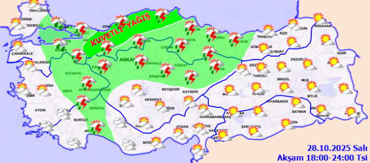 ANKARA (İGFA) – Meteoroloji Genel Müdürlüğü, 28 Ekim Salı gününe ilişkin hava tahmin raporunu yayımladı.