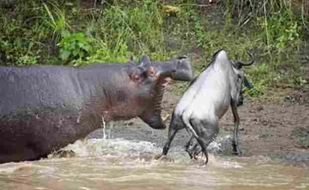 Ölümcül timsahları bile etkisiz hale getirebilecek kadar büyük dişlere sahip olan su aygırının elinden zor kurtulan bakıcı, acemiliğini bu kez ucuz atlattı.